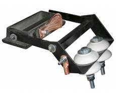Башмак токосъемный соединяется гибким медным соединением с кронштейном, к которому при монтаже присоединяется токоподводящий кабель.